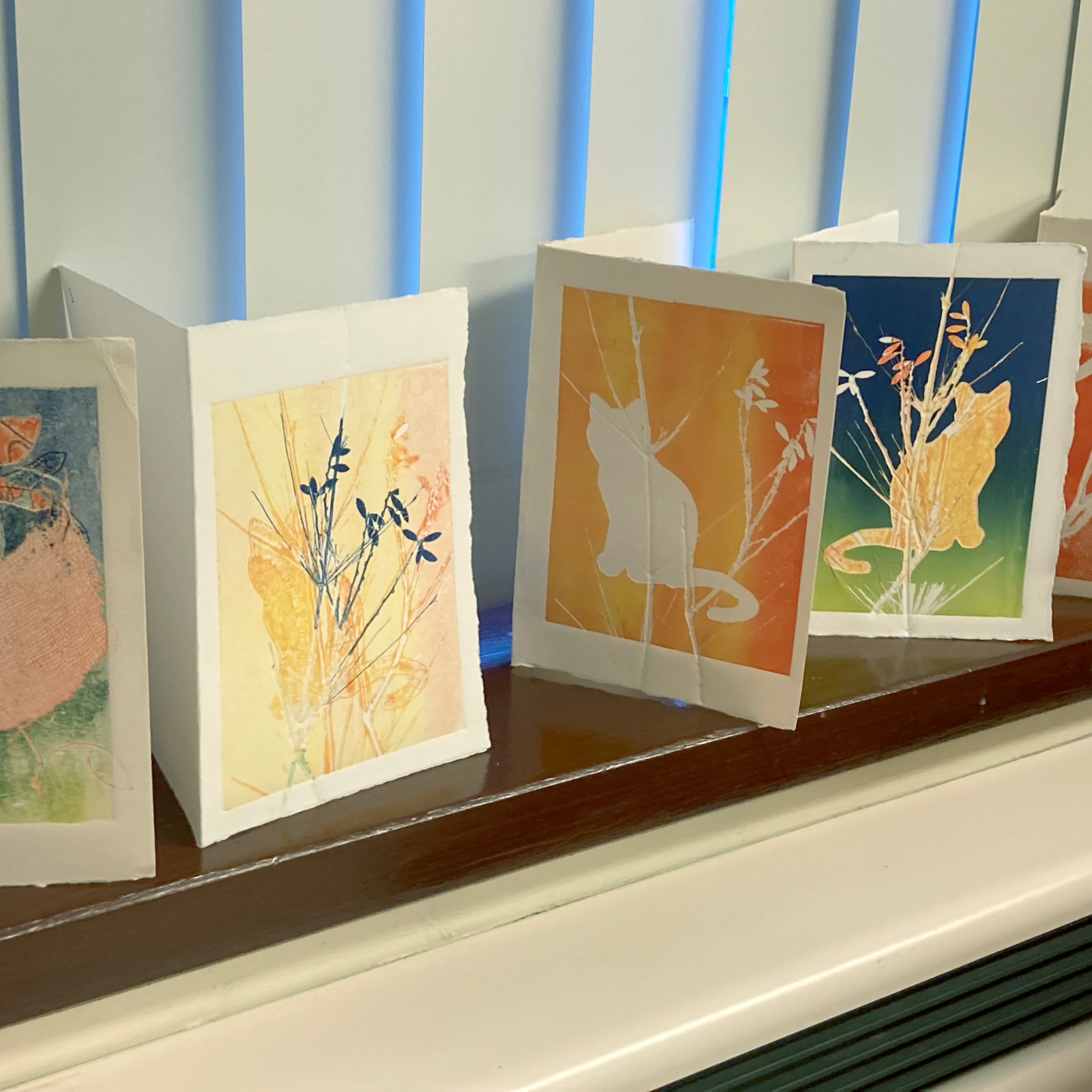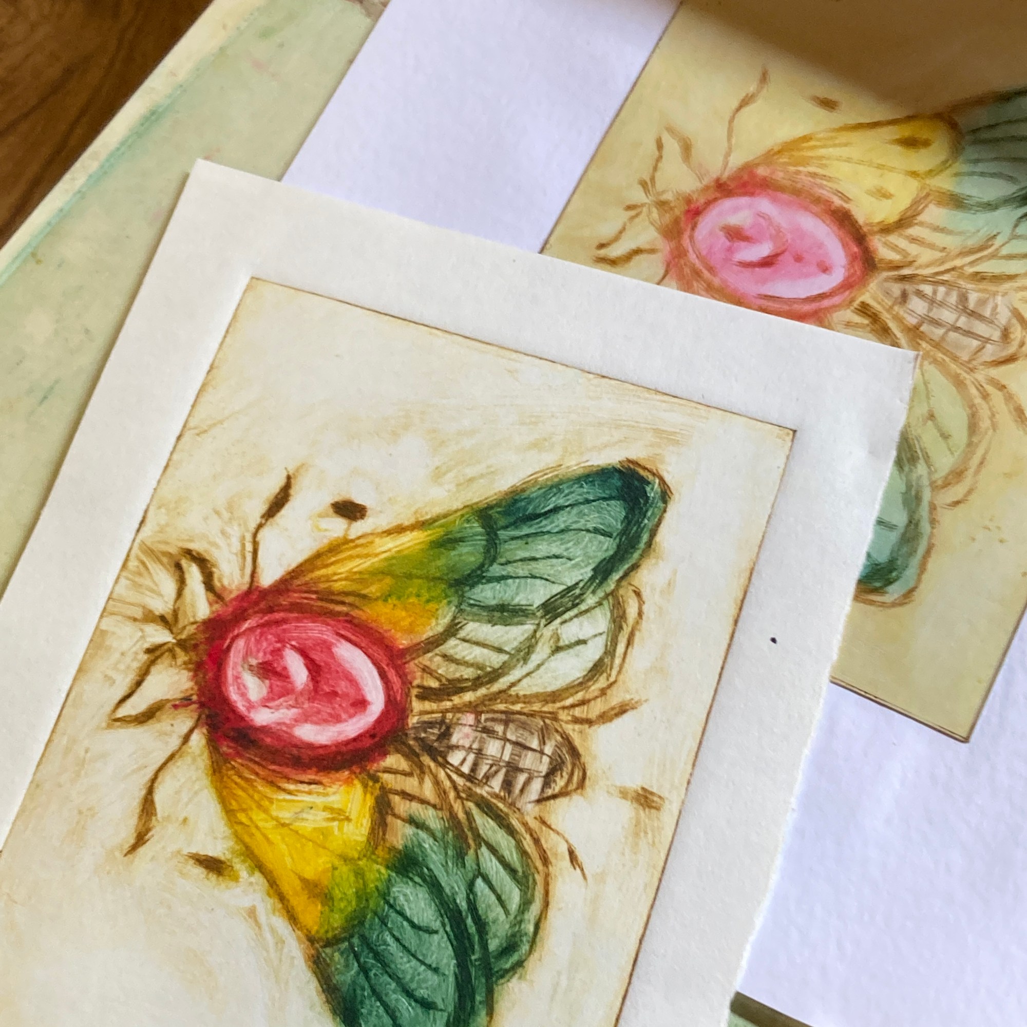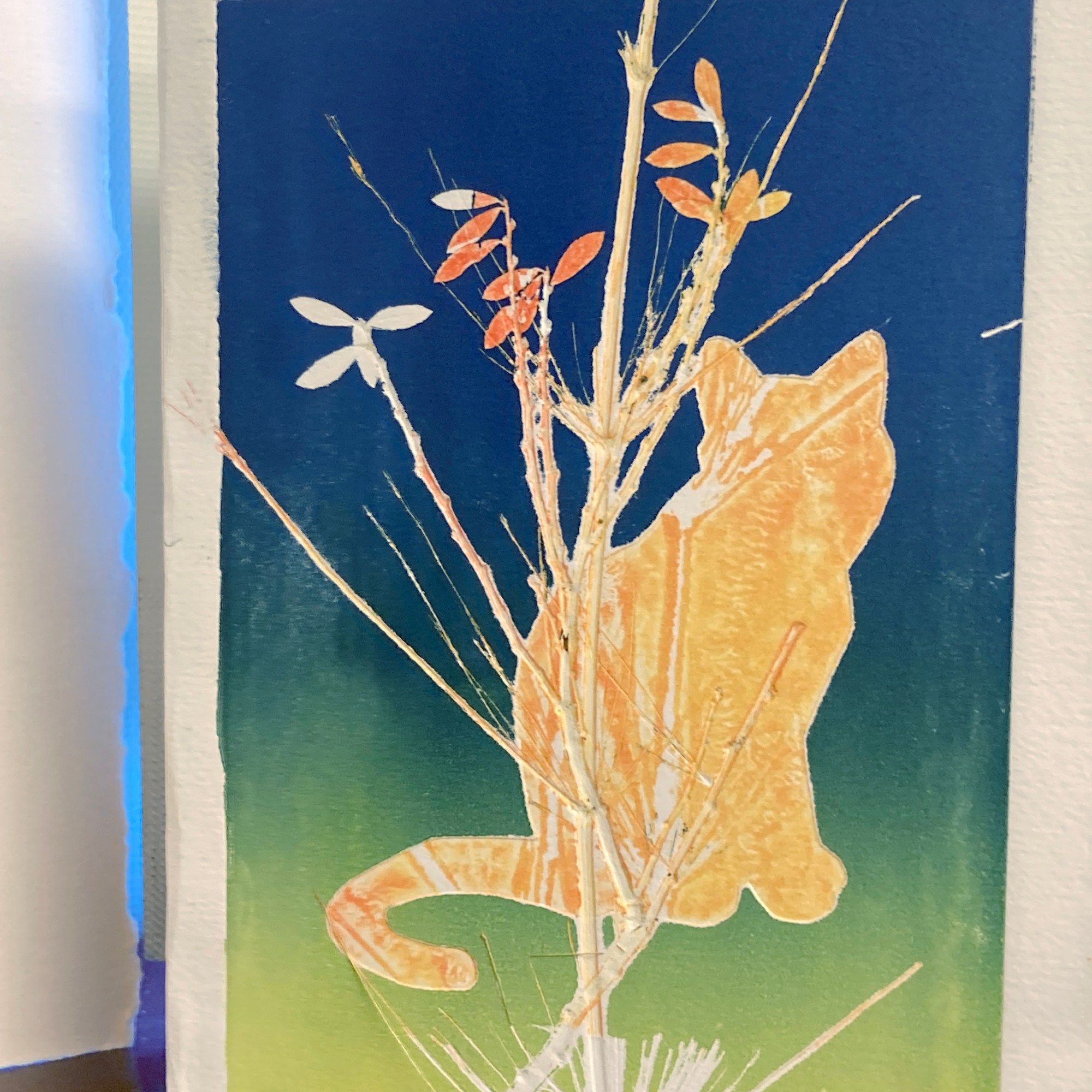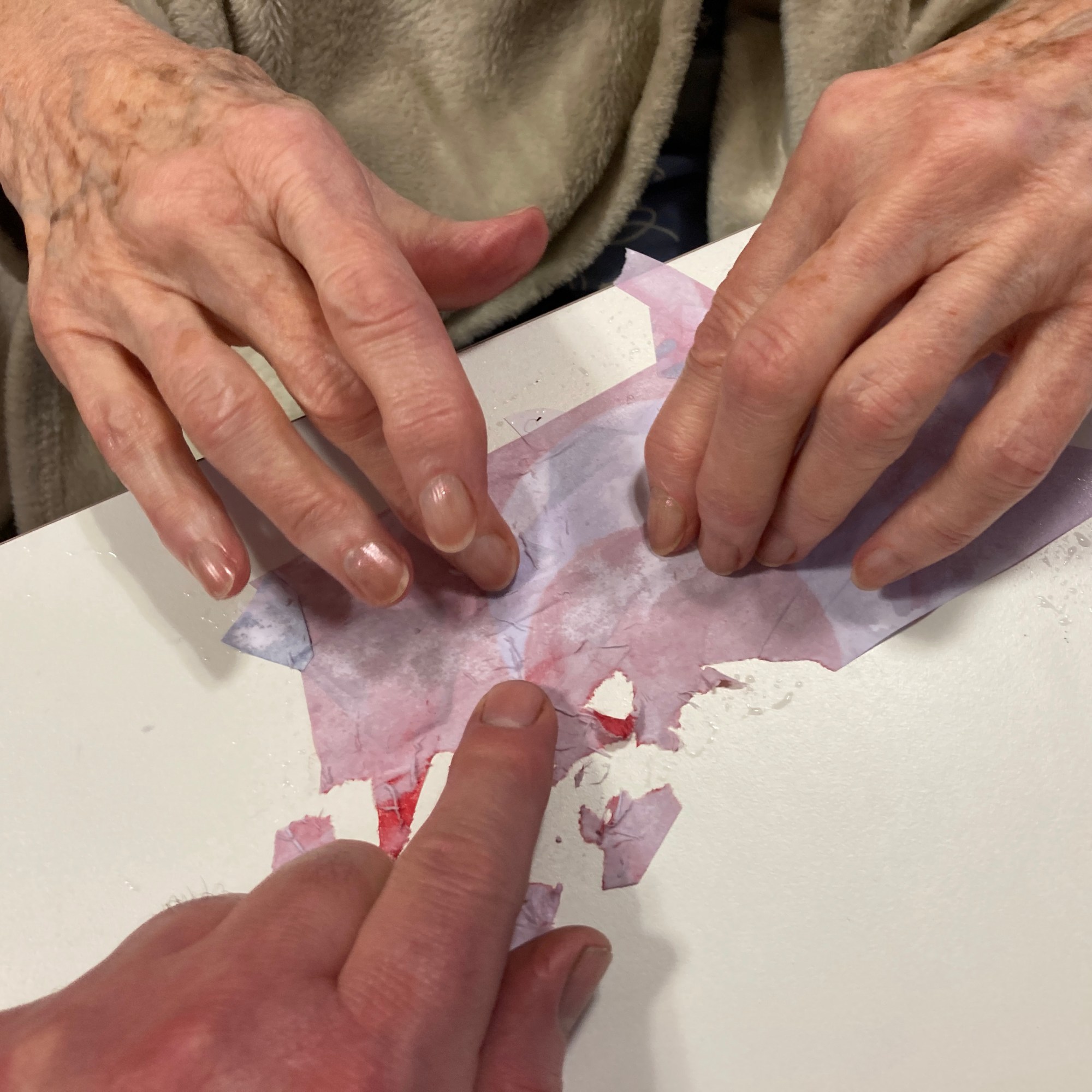 I work with Inside Out Cymru providing regular arts and crafts sessions centering on printmaking activities for groups interested in mindful creativity. I have also worked with dementia patients in hospital (Ysbyty’r Tri Chwm, Ebbw Vale) and people with early onset dementia in the community. I also work regularly with Horatio’s Garden at Llandough Hospital in Cardiff providing arts workshops for long term patients in the spinal injury ward.